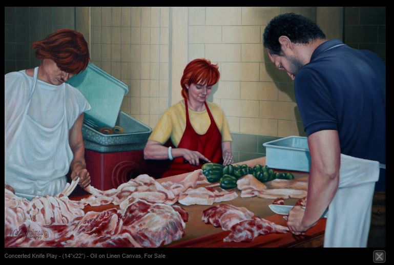 MARITIME: Concerted Knife Play - 22" X 14" - Oil on linen canvas